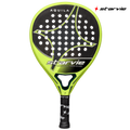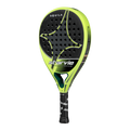 Its 100% 3K Carbon fibre composition makes this racket very resistant and durable. It has a teardrop shape and a medium-high balance towards the tip. In addition, there is some texture from the decal of the racket.